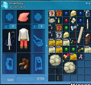 アイテムによって、インベントリのマスを埋める数と形が違います。