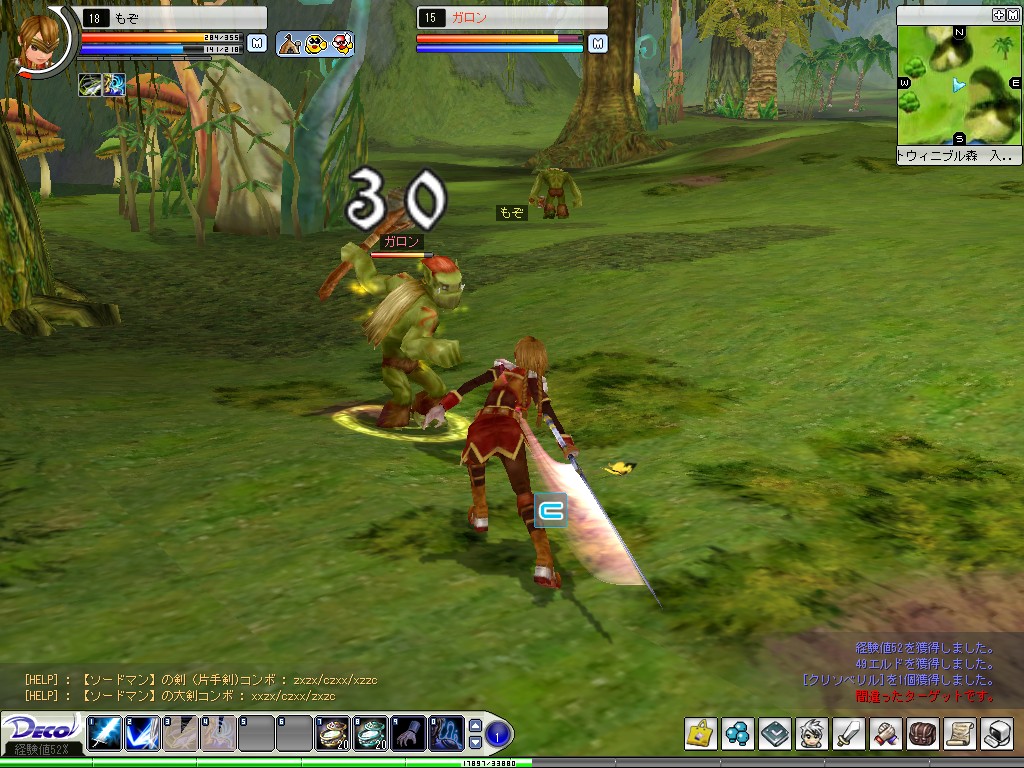 「ソードマン」のコンボは、攻撃時に表示されるキーをタイミングよく押して連続攻撃を行います。